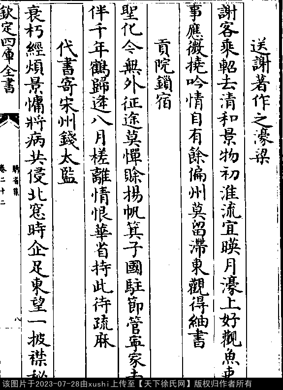 文化 送钱先辈之虔州 五代至宋初 · 徐铉