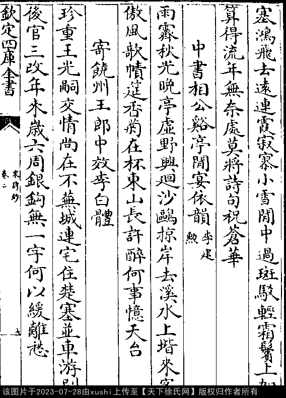 文化 中书相公溪亭闲宴依韵(李建勋) 五代至宋初 · 徐铉