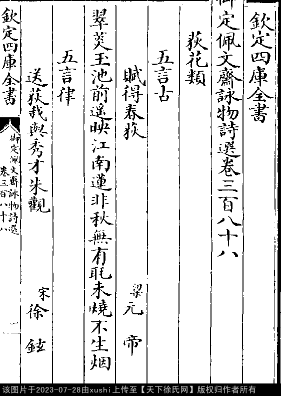 《御定佩文齋詠物詩選-清-張玉書》卷三百八十八(第 1b - 2a 頁)
