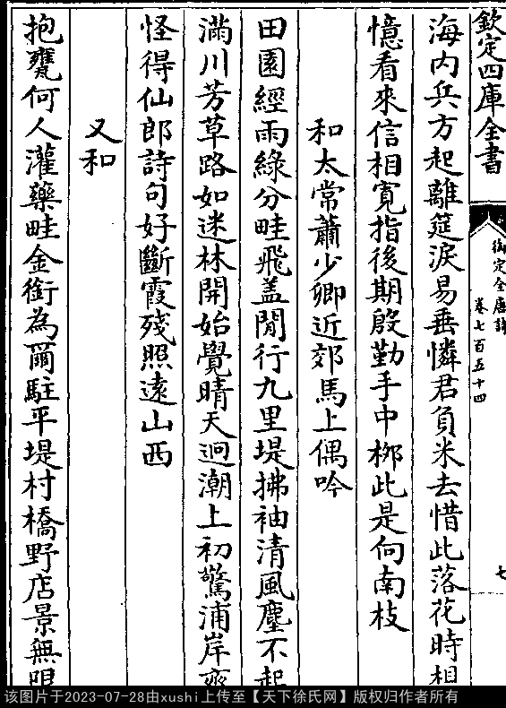 出处:《御定全唐詩-清-聖祖玄燁》卷七百五十四(第 7b - 8a 頁)