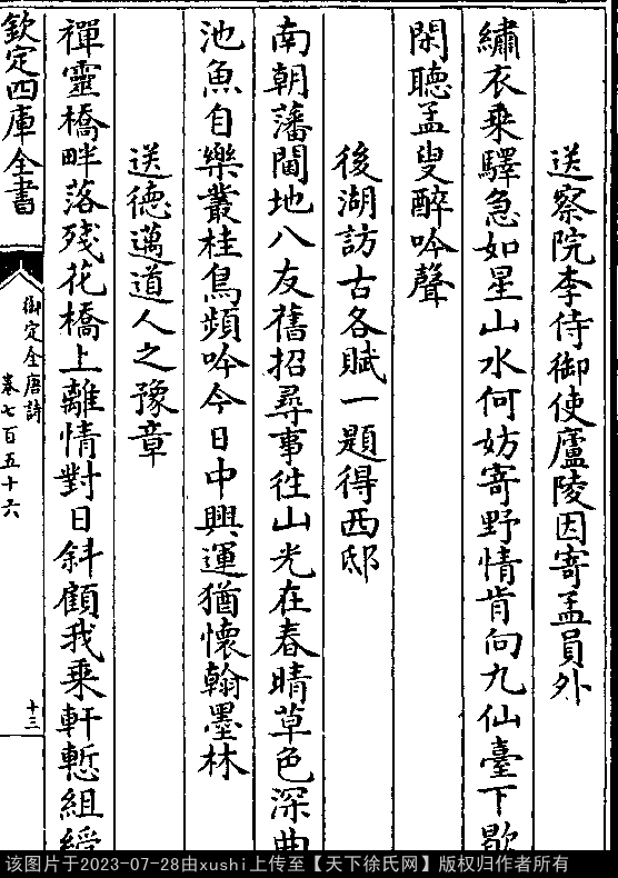 出处:《御定全唐詩-清-聖祖玄燁》卷七百五十六(第 13a - 13b 頁)