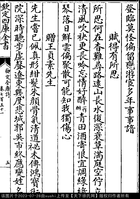 出处:《御定全唐詩-清-聖祖玄燁》卷七百五十一(第 5a - 5b 頁)