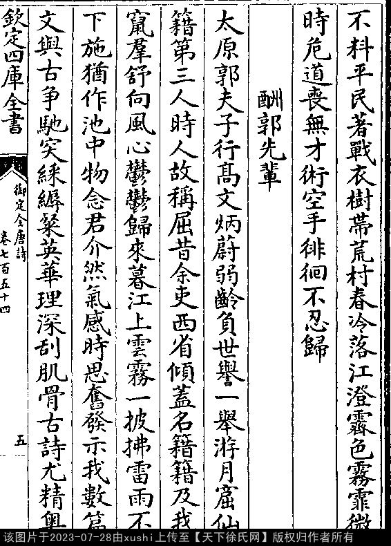 出处:《御定全唐詩-清-聖祖玄燁》卷七百五十四(第 5a - 6a 頁)