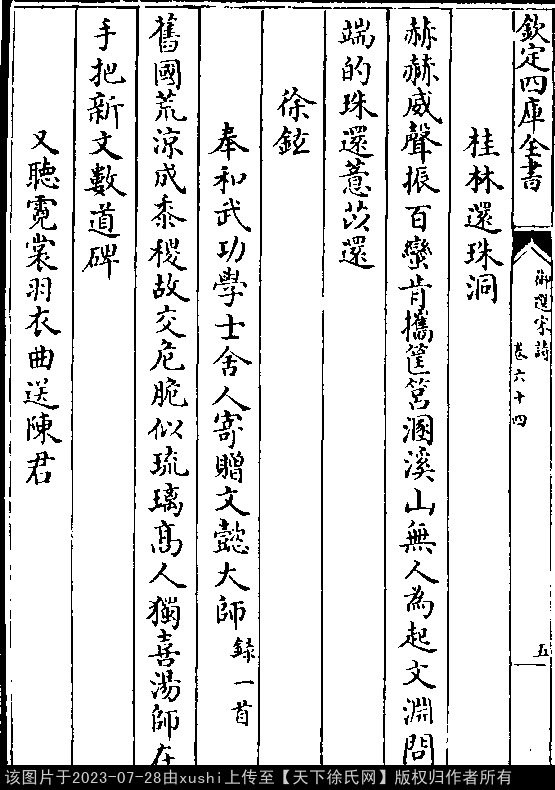 出处:《御選宋金元明四朝詩-清-聖祖玄燁》卷六十四(第 6a - 6b 頁)