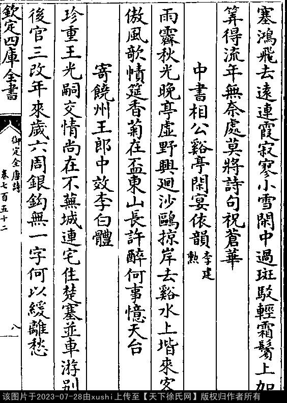 出处:《御定全唐詩-清-聖祖玄燁》卷七百五十二(第 8b - 9a 頁)