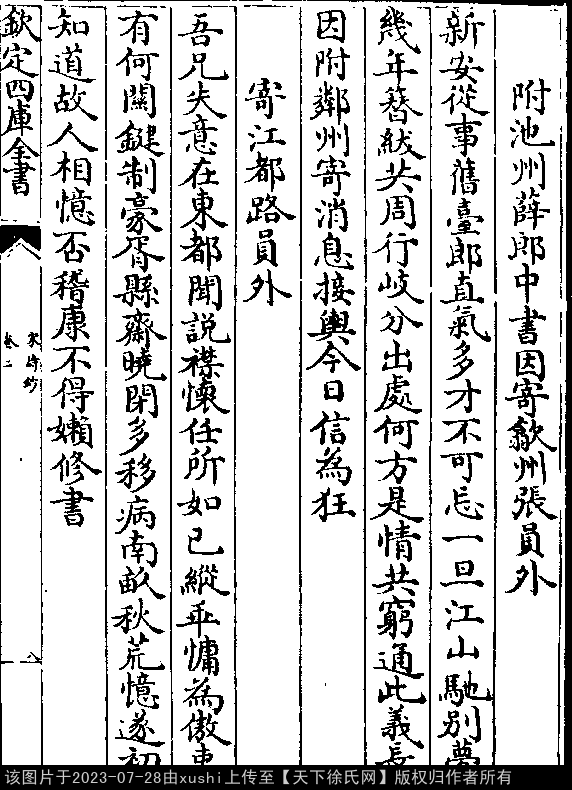 文化 附池州薛郎中书因寄歙州张员外 五代至宋初 · 徐铉