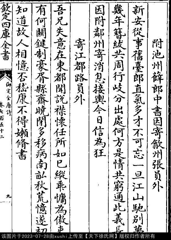 文化 寄江都路员外 五代至宋初 · 徐铉