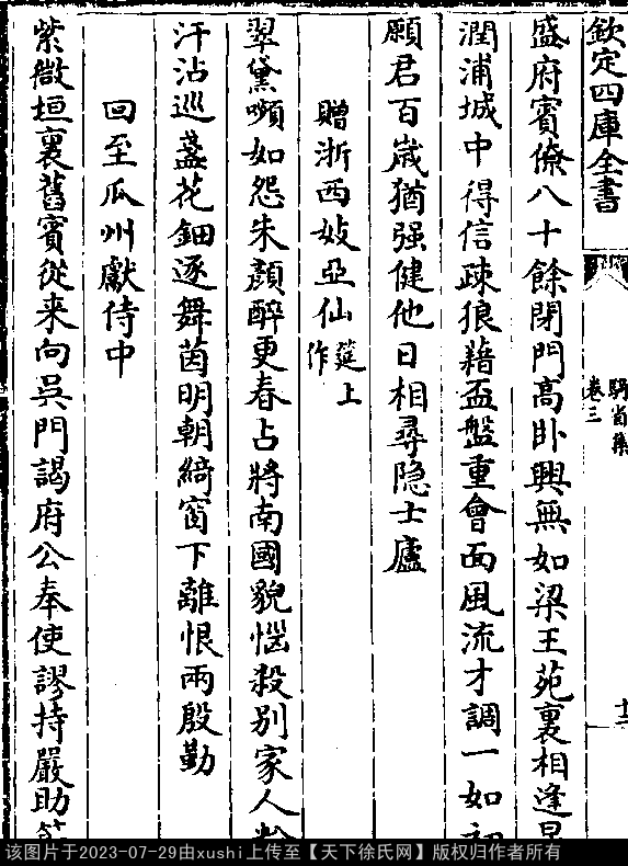 文化 赠浙西顾推官 五代至宋初 · 徐铉
