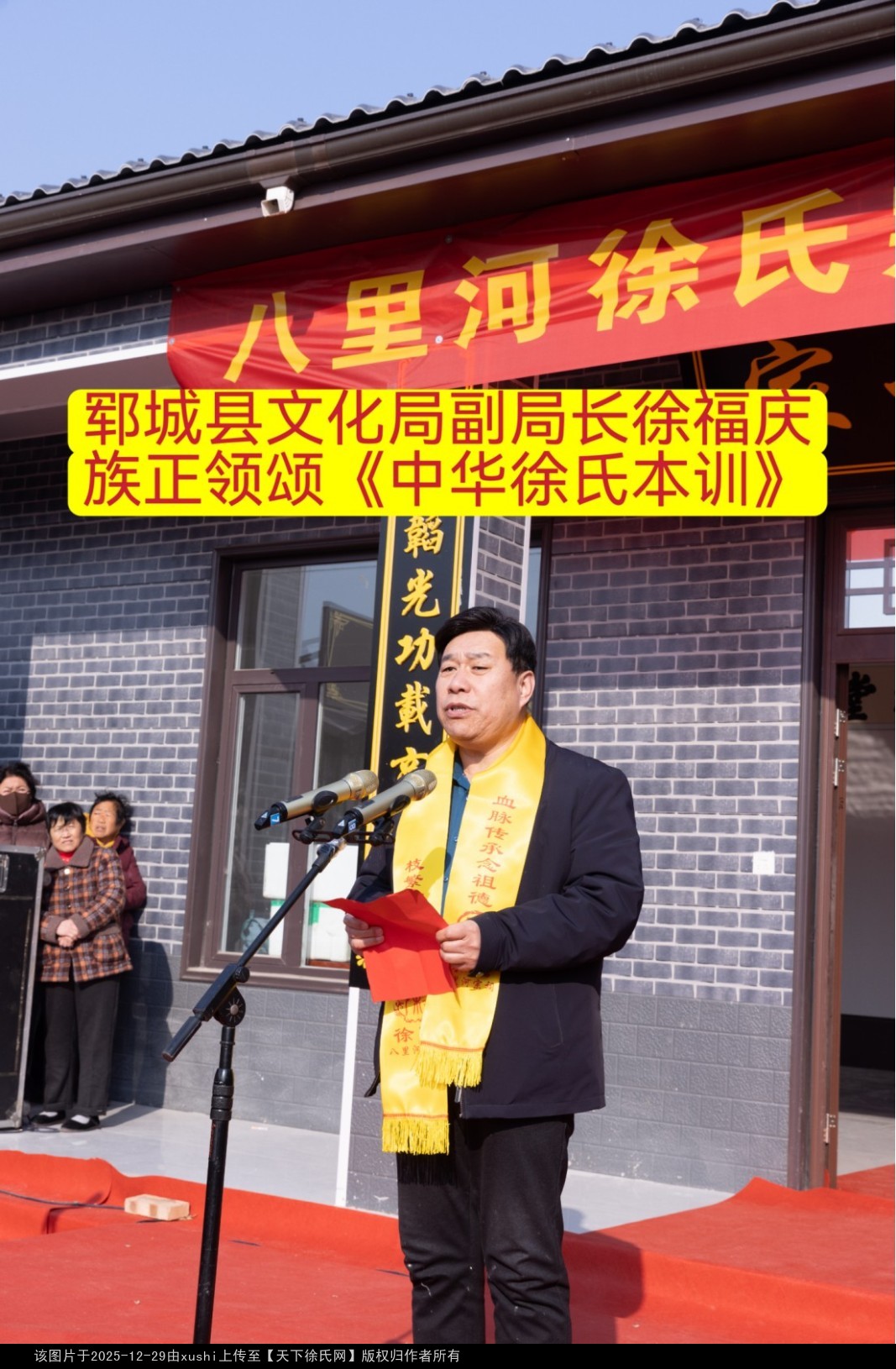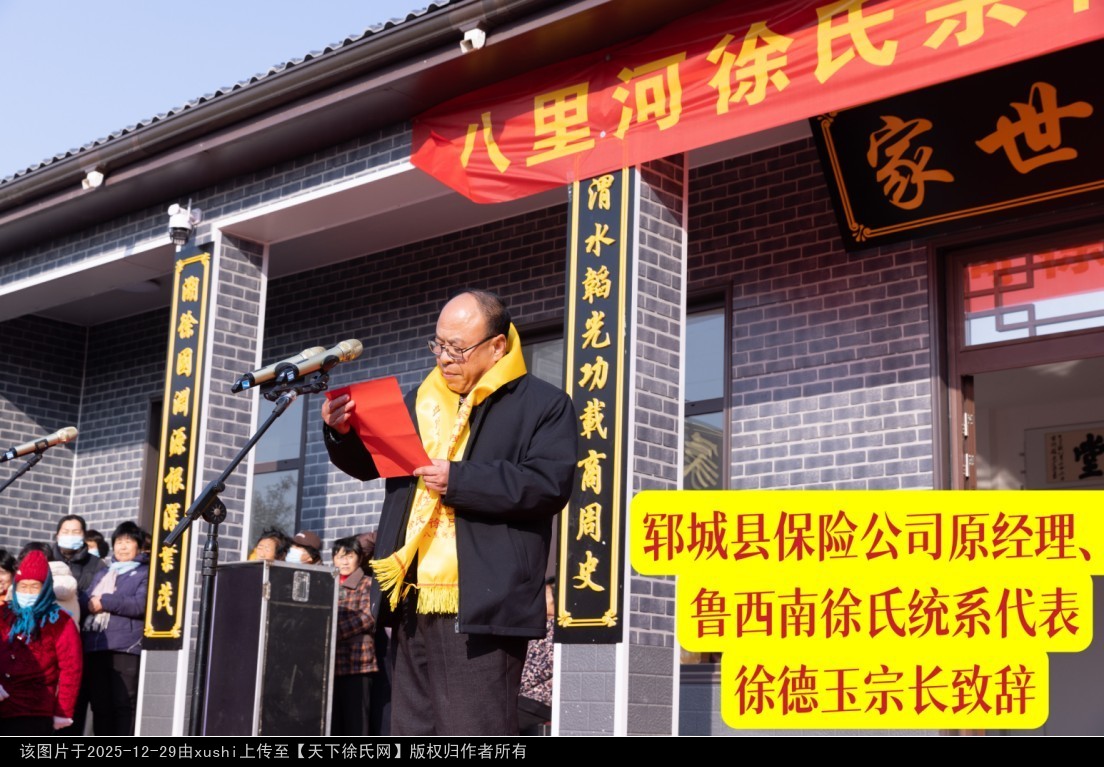 2025年12月5日(农历乙巳年十月十六),山东省郓城县八里河社区喜气洋洋,“八里河徐氏宗祠落成典礼”在此隆重举行,八方宗亲齐聚一堂,共襄盛举,见证这一传承家族文脉、弘扬传统文化的重要时刻。