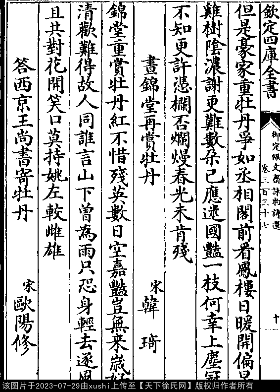 《御定佩文齋詠物詩選-清-張玉書》卷三百三十七(第 10b - 11a 頁)