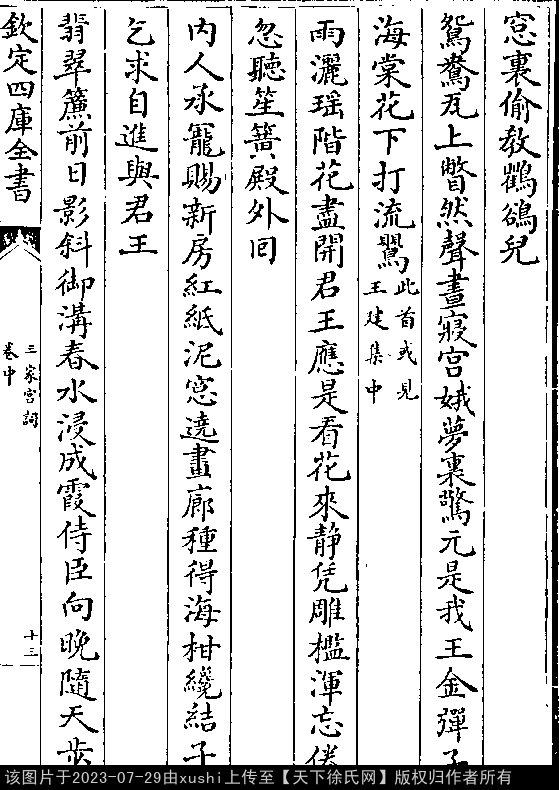 出处:《三家宮詞-明-毛晉》三家宮詞 卷中(第 13a - 13b 頁)