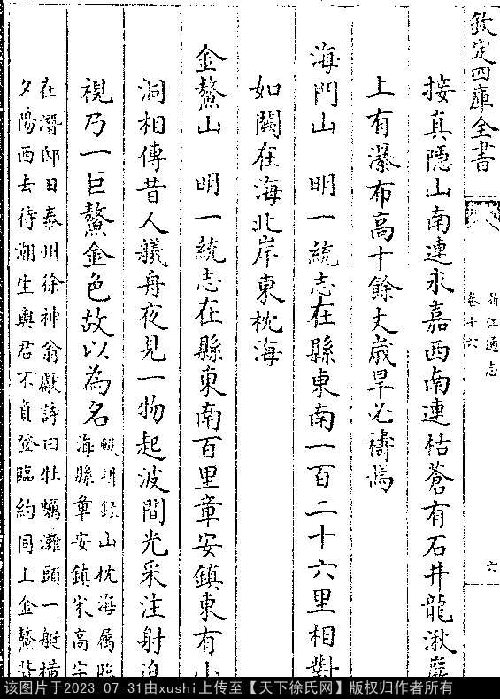 出处:《浙江通志-清-嵇曾筠》浙江通志 卷十六(第 6b - 7b 頁)
