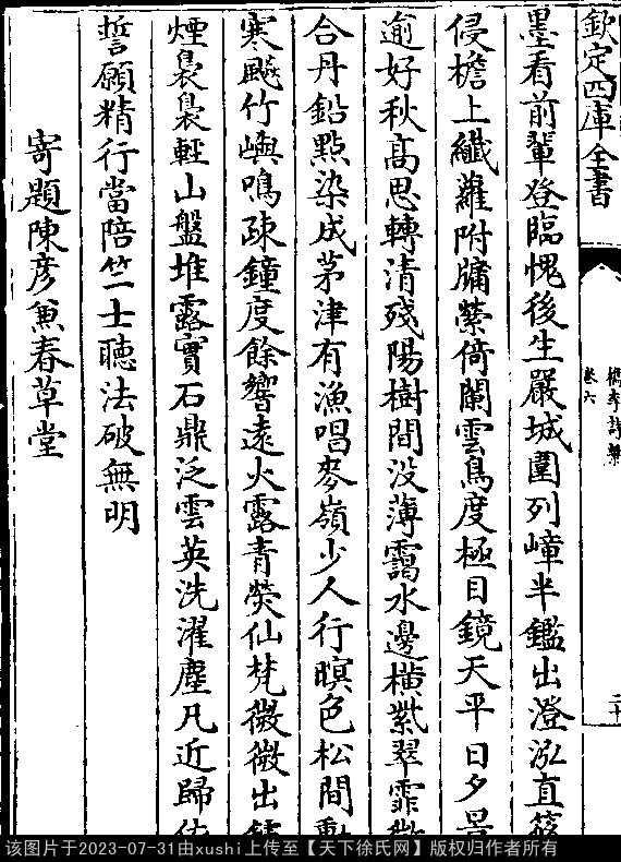 出处:《檇李詩繫-清-沈季友》卷六(第 20a - 21a 頁)