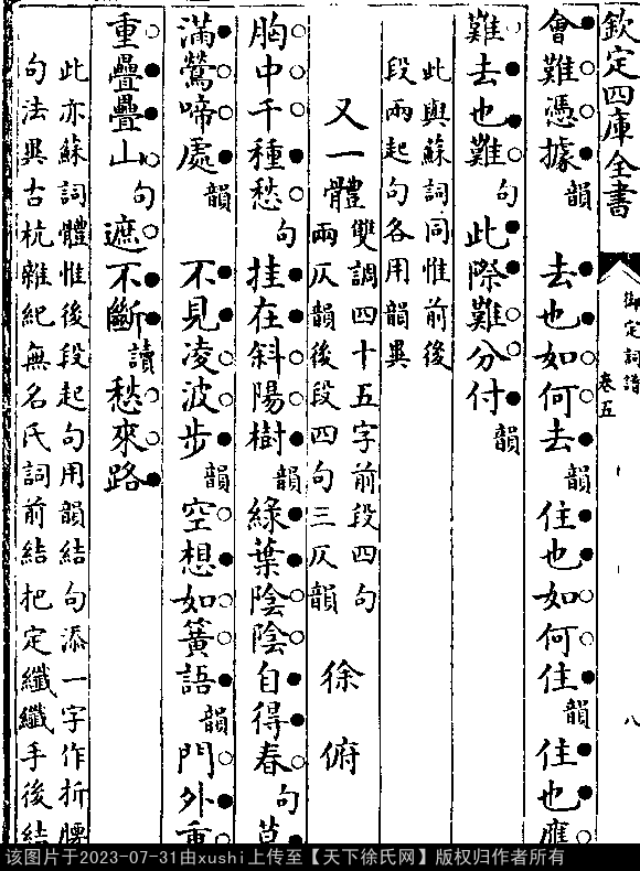 《御定詞譜-清-王奕清》卷五目錄(第 10b - 11a 頁)