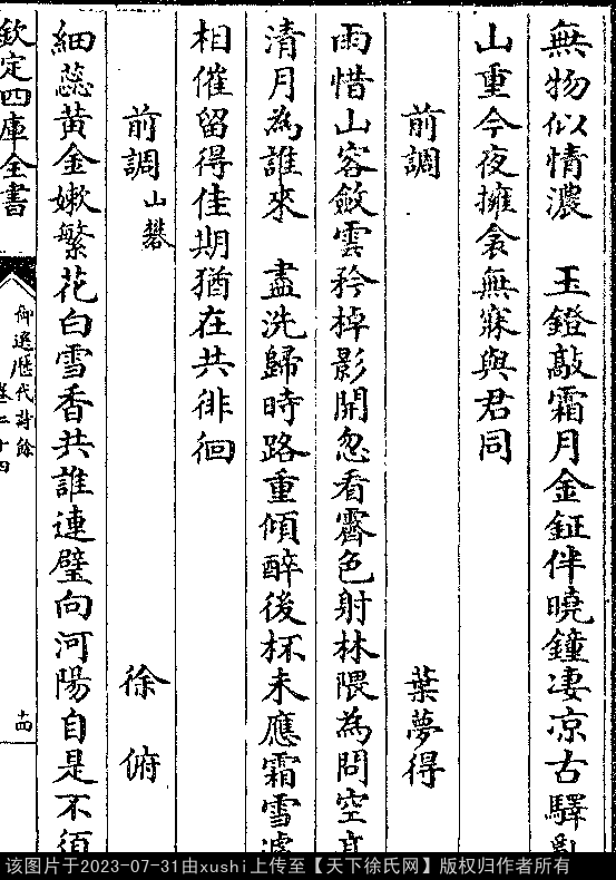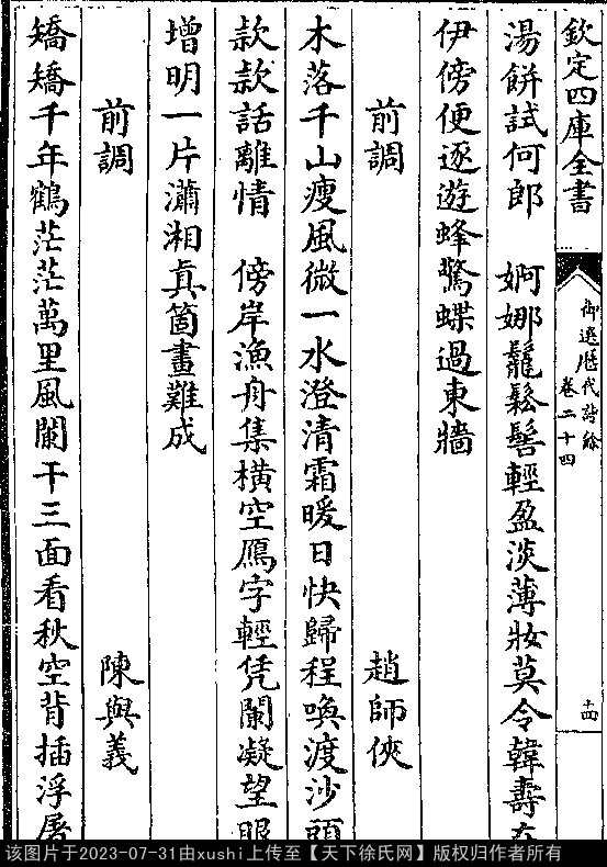 《御選歷代詩餘-清-聖祖玄燁》御選歷代詩餘 卷二十四目録(第 19a - 20a 頁)