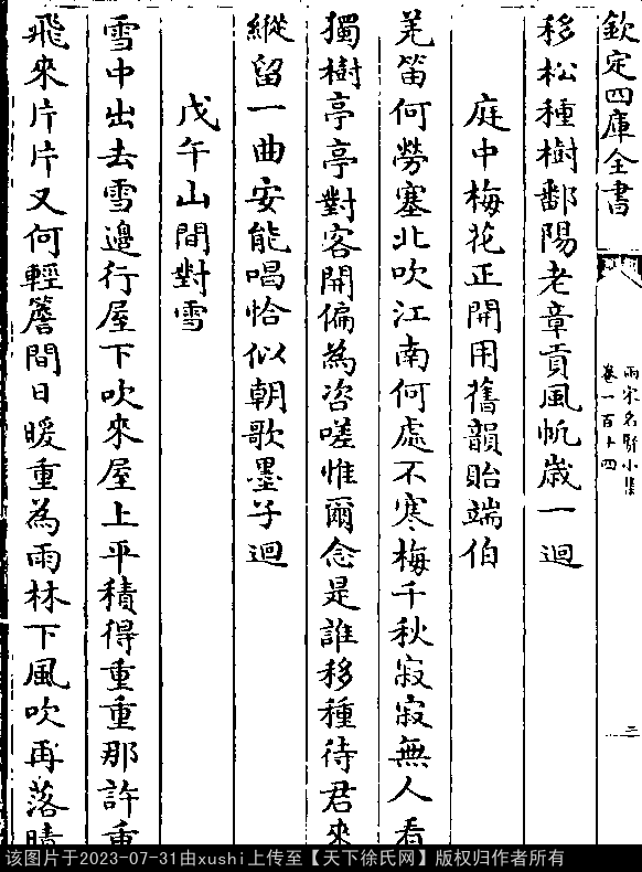 文化 同曾户部吴县尉张秀才北山僧房寻梅令客对棋 宋 · 徐俯
