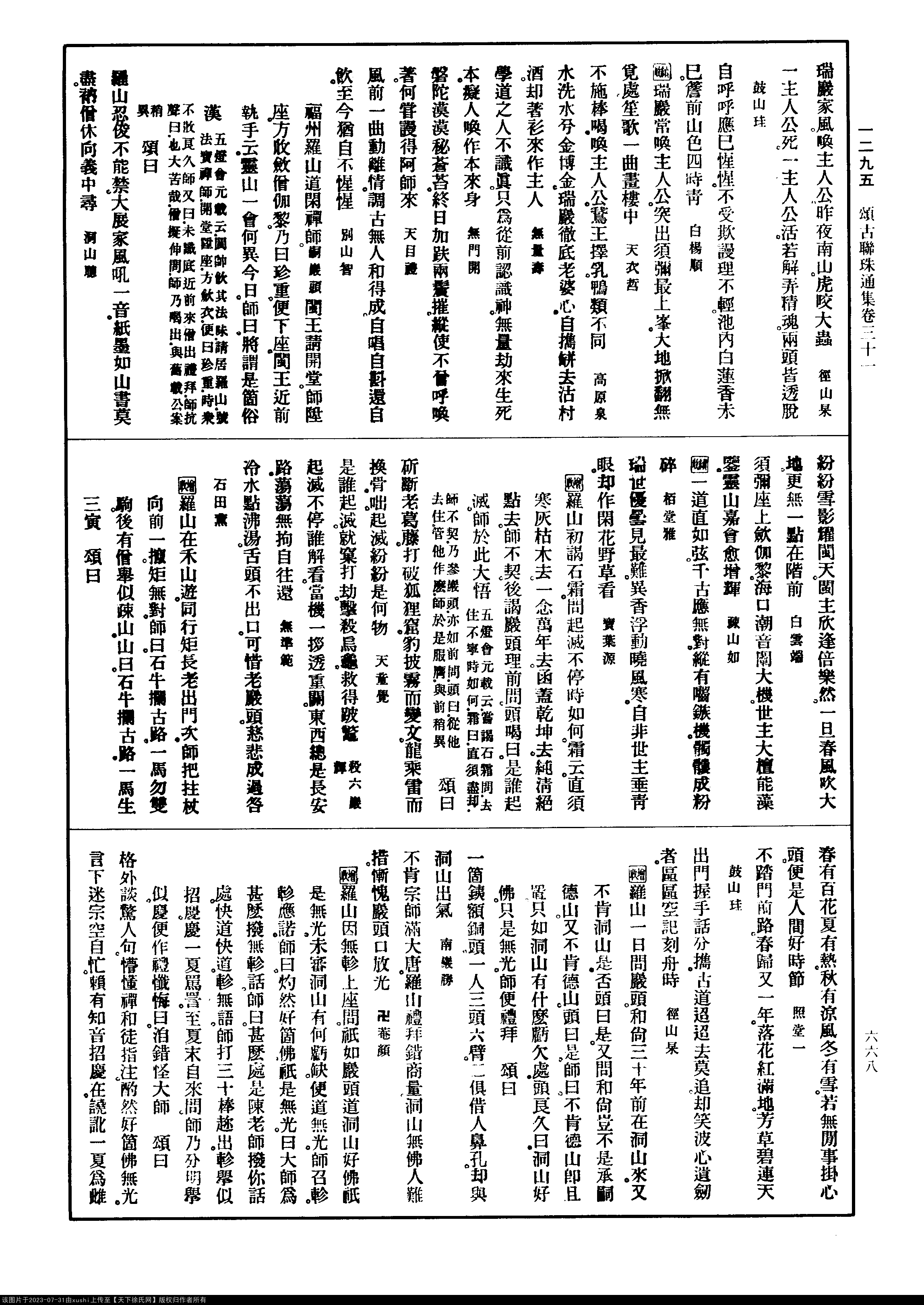《禪宗頌古聯珠通集-宋-法應》六祖下第七世之二(南嶽下第六世之餘)¶(第 668c - 669a 頁)