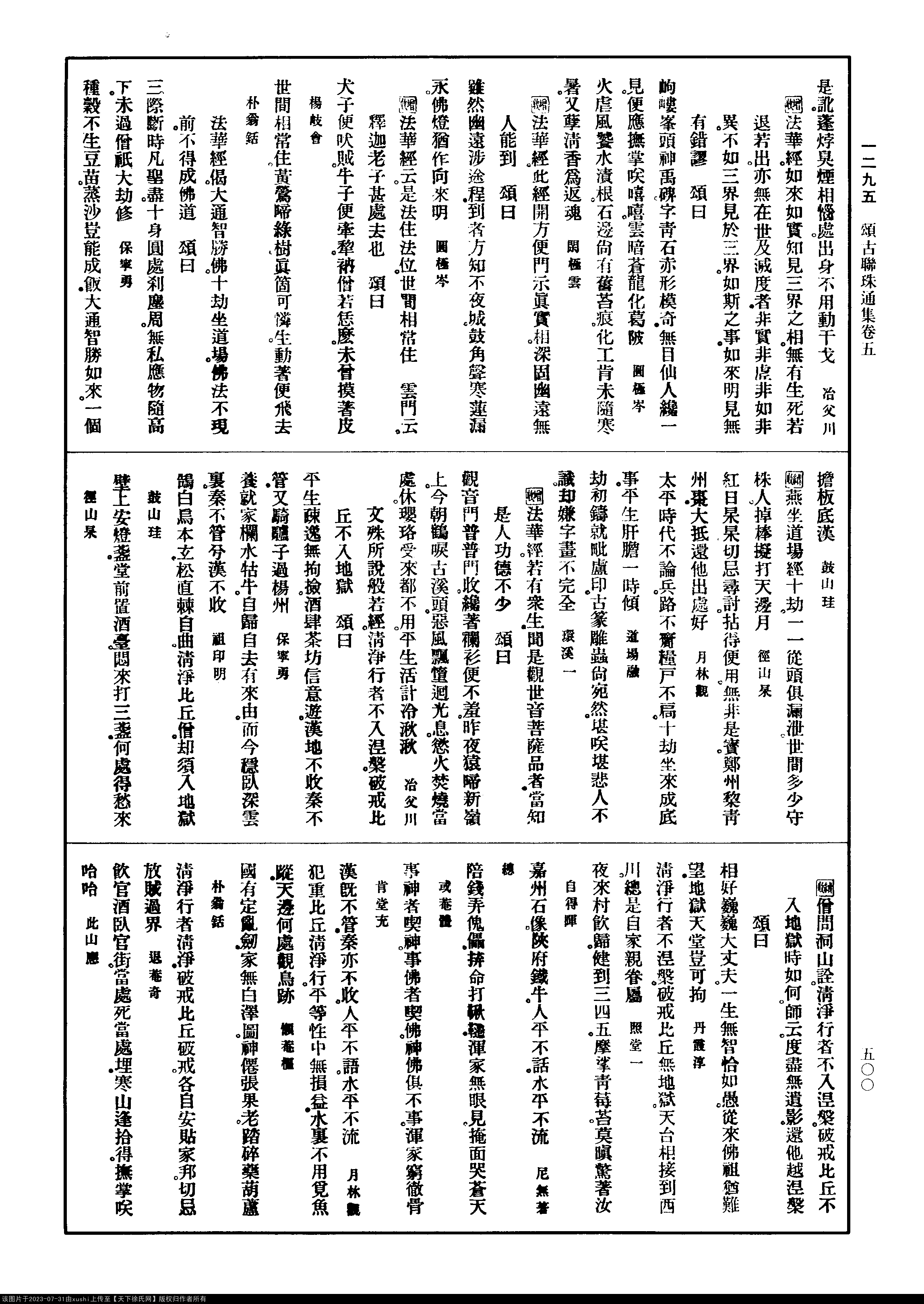 《禪宗頌古聯珠通集-宋-法應》大乘經偈之餘¶(第 500c - 501a 頁)