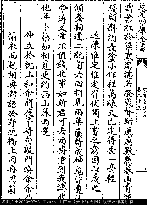 《宋百家詩存-清-曹庭棟》卷二十三(第 13a - 13b 頁)