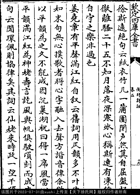诵彻离骚二千五,不知月落夜深寒(宋刘克庄《后村诗话》续集卷一)。