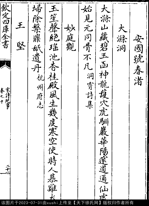 出处:《宋詩紀事-清-厲鶚》卷七十(第 21a - 21b 頁)