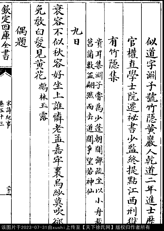 出处:《宋詩紀事-清-厲鶚》卷五十三(第 23b - 24a 頁)