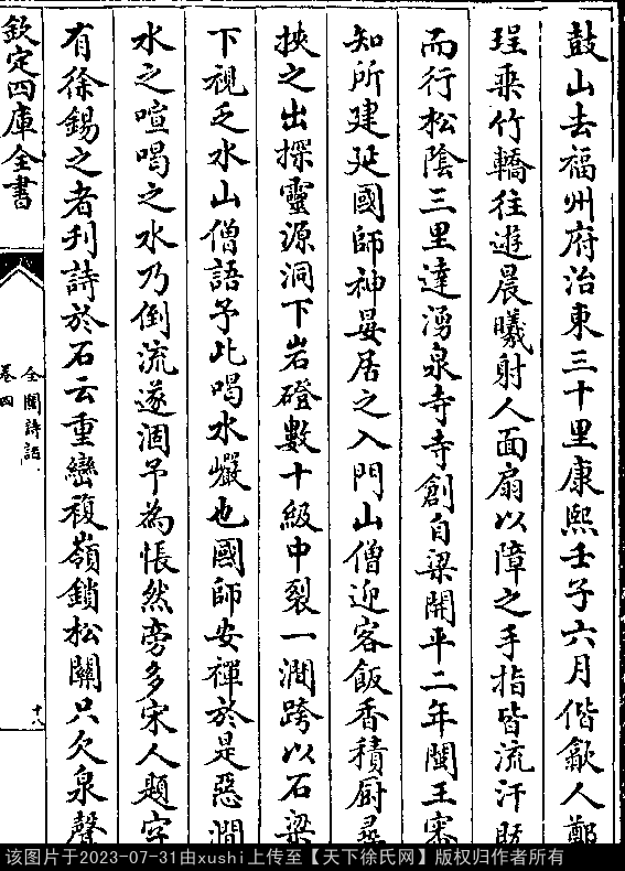 我若当年侍师侧,不教喝水过他山(清朱彝尊《曝书亭集》卷六八《鼓山题名》)。