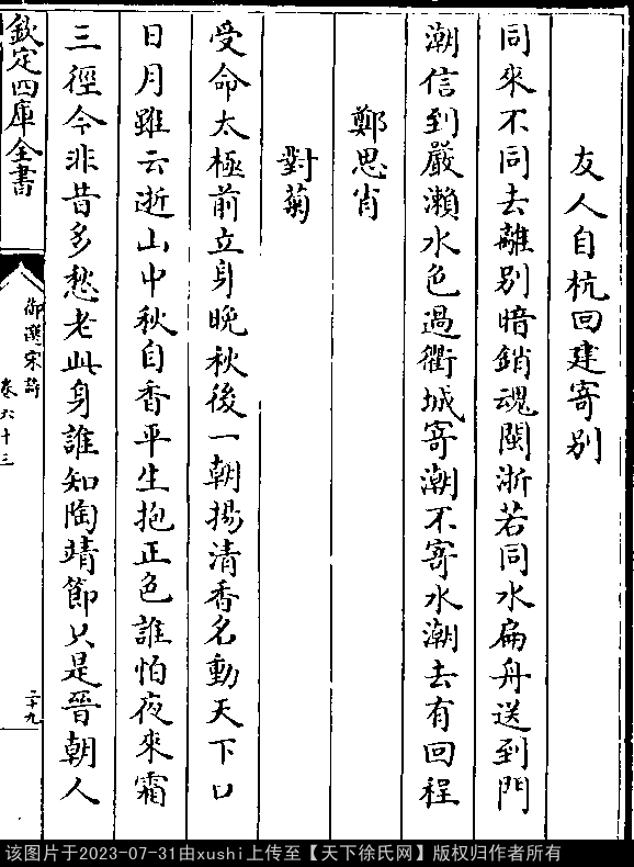 出处:《御選宋金元明四朝詩-清-聖祖玄燁》卷六十三(第 29b - 30a 頁)