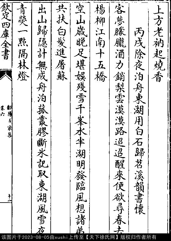 杳杳磬声清入梦,上方老衲起烧香。