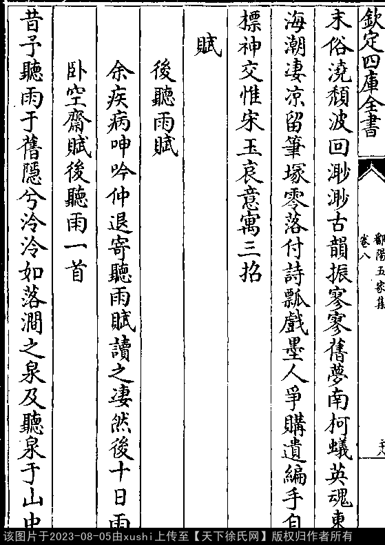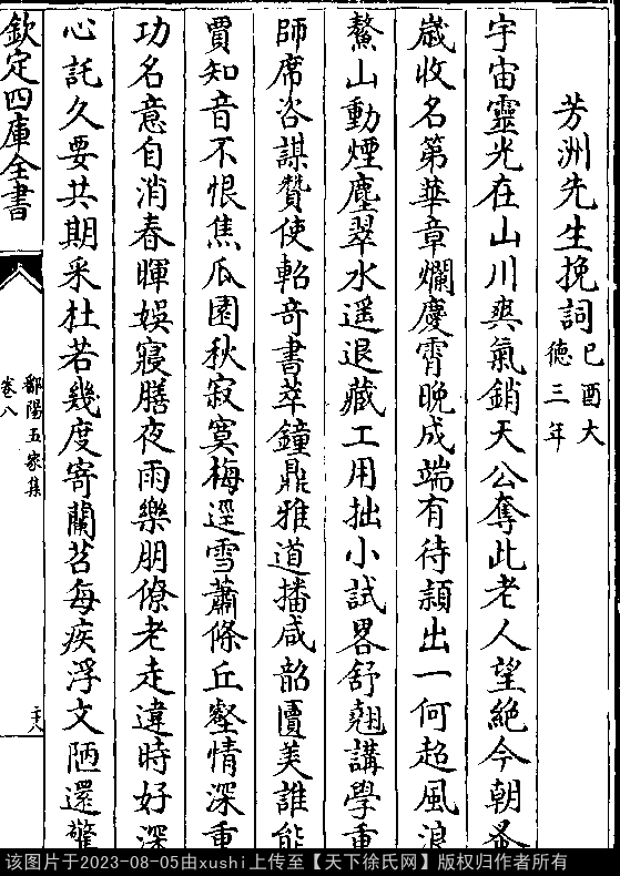 神交惟宋玉,哀意寓三招(以上《松巢漫稿》卷三)。