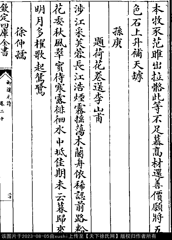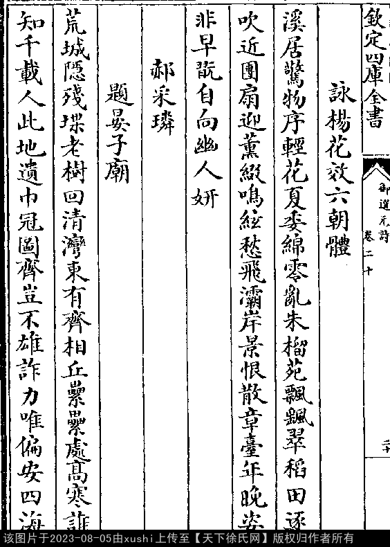 《御選宋金元明四朝詩-清-聖祖玄燁》御選宋金元明四朝詩 御選元詩卷二十(第 20b - 21a 頁)