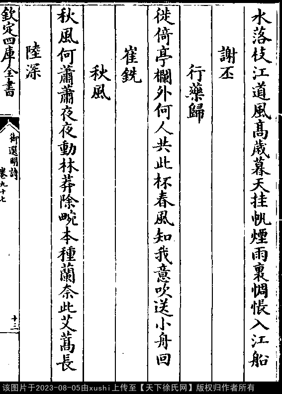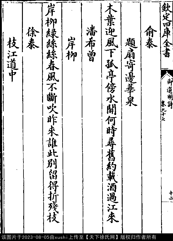 出处:《御選宋金元明四朝詩-清-聖祖玄燁》御選宋金元明四朝詩 御選明詩卷九十七(第 13a - 13b 頁)