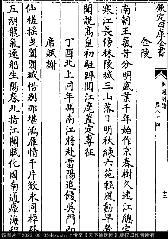七言律诗 押庚韵 出处:御选明诗卷八十四