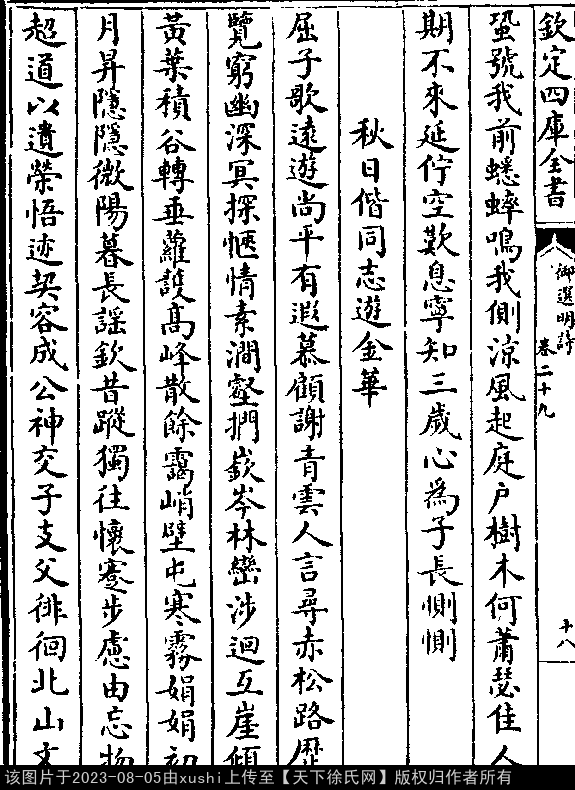 《御選宋金元明四朝詩-清-聖祖玄燁》御選宋金元明四朝詩 御選明詩卷二十九(第 19a - 19b 頁)