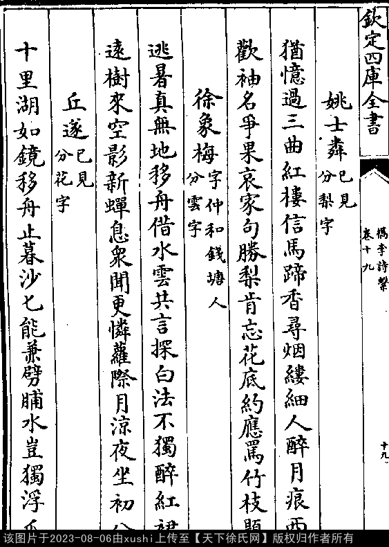 《檇李詩繫-清-沈季友》卷十九(第 19b - 20a 頁)