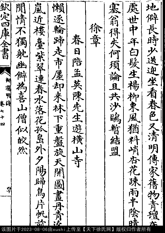 文化 春日陪孟英陈先生游横山寺 明 · 徐章