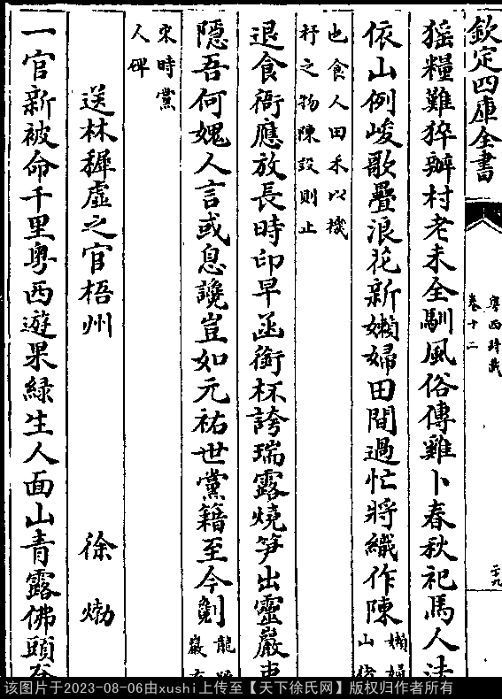 文化 送林稚虚之官梧州 明 · 徐㶿