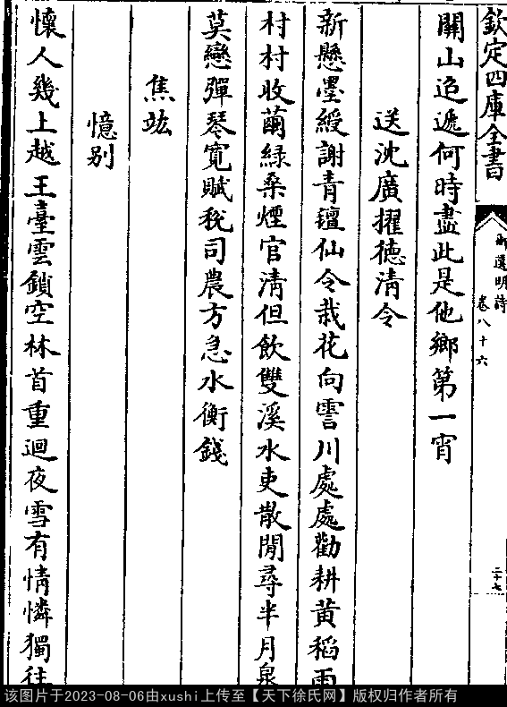 七言律诗 押萧韵 出处:御选明诗卷八十六