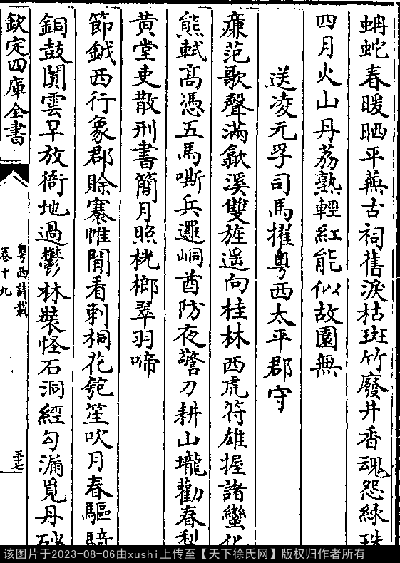 文化 送凌元孚司马擢粤西太平郡守 两首 明 · 徐㶿