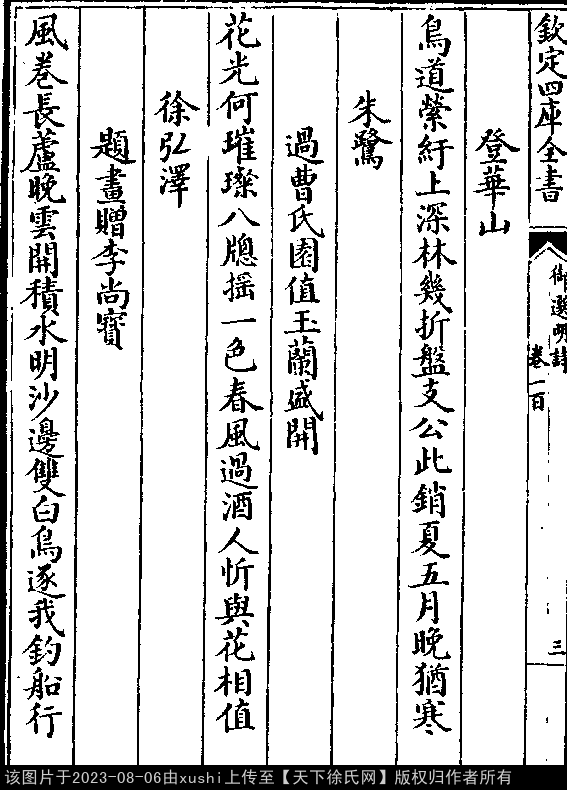 《御選宋金元明四朝詩-清-聖祖玄燁》御選宋金元明四朝詩 御選明詩卷一百(第 3b - 4a 頁)
