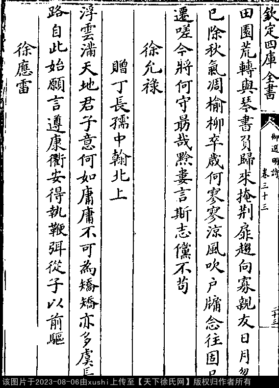押侵韵 出处:御选明诗卷三十三