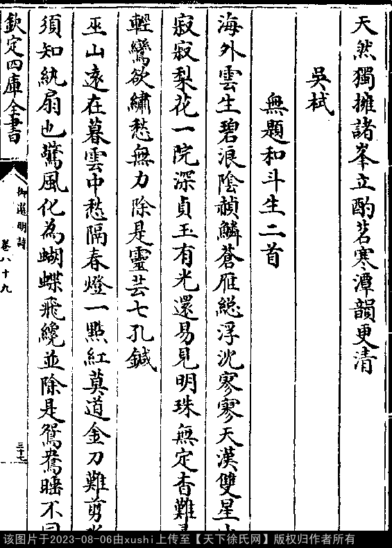 《御選宋金元明四朝詩-清-聖祖玄燁》御選宋金元明四朝詩 御選明詩卷八十九(第 36b - 37b 頁)