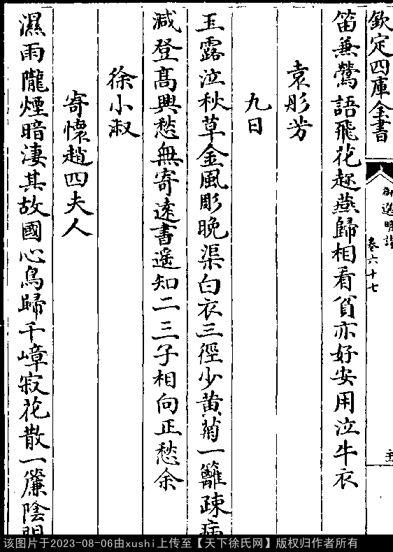 五言律诗 押阳韵 出处:御选明诗卷六十七