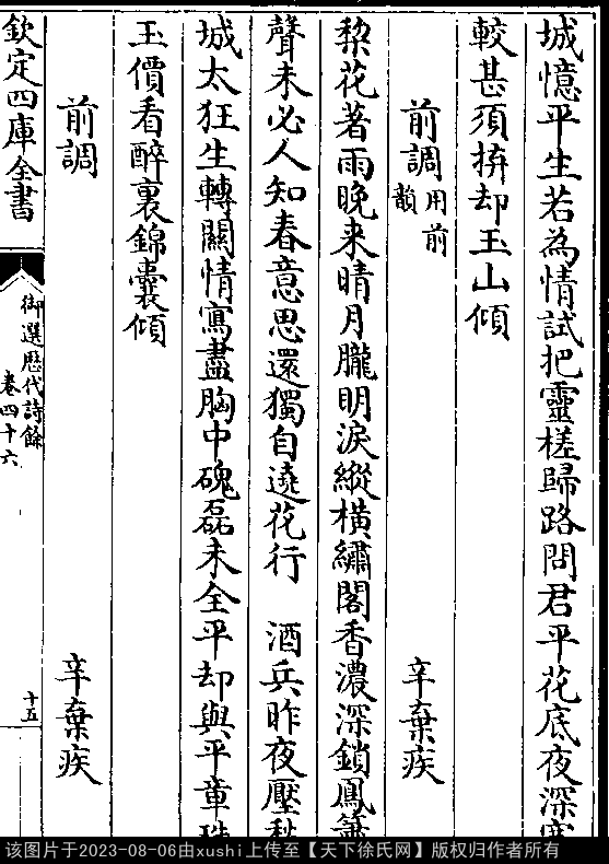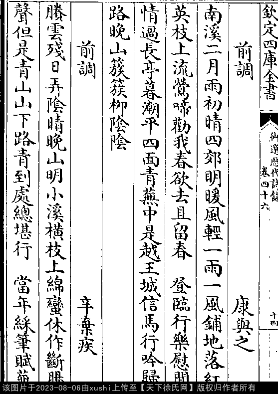 《御選歷代詩餘-清-聖祖玄燁》御選歷代詩餘 卷四十六目録(第 19a - 19b 頁)