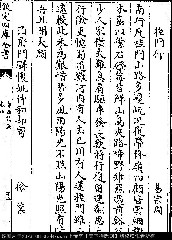 文化 泊府门驿怀姚仲和却寄 明 · 徐棻