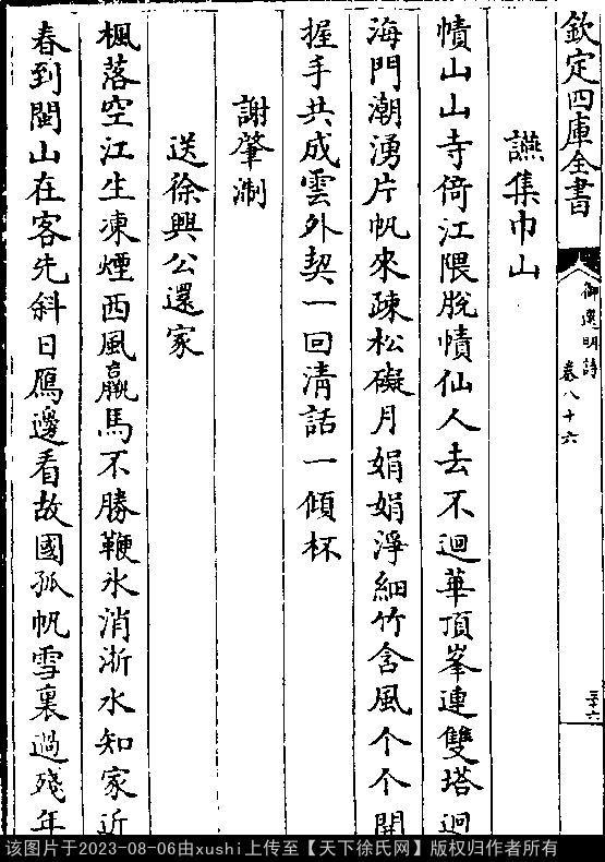 《御選宋金元明四朝詩-清-聖祖玄燁》御選宋金元明四朝詩 御選明詩卷八十六(第 36b - 37a 頁)