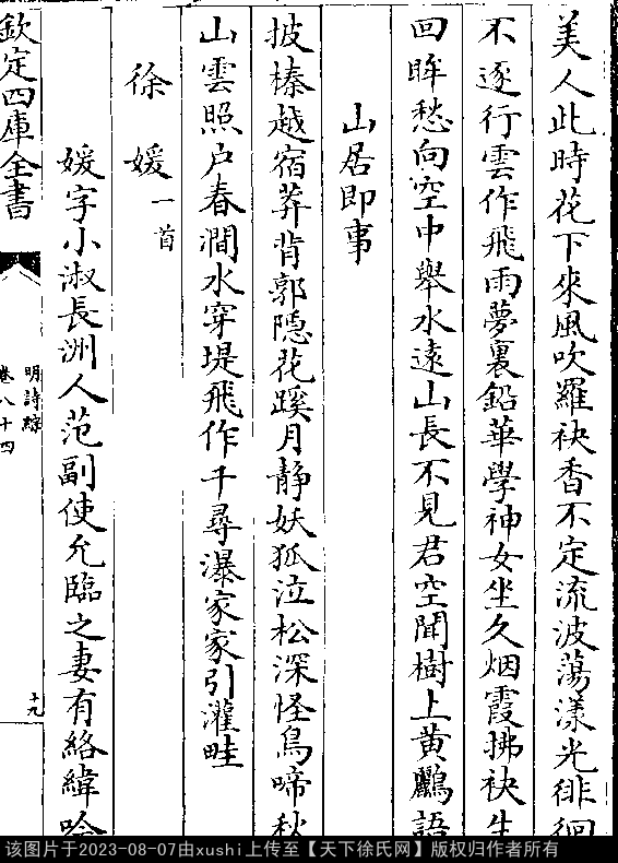 七言绝句 押尤韵 出处:御选明诗卷一百十五