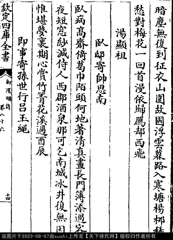七言律诗 押微韵 出处:御选明诗卷八十六