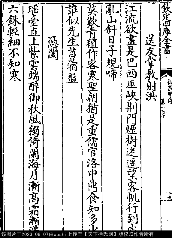 七言绝句 押寒韵 出处:御选明诗卷一百十