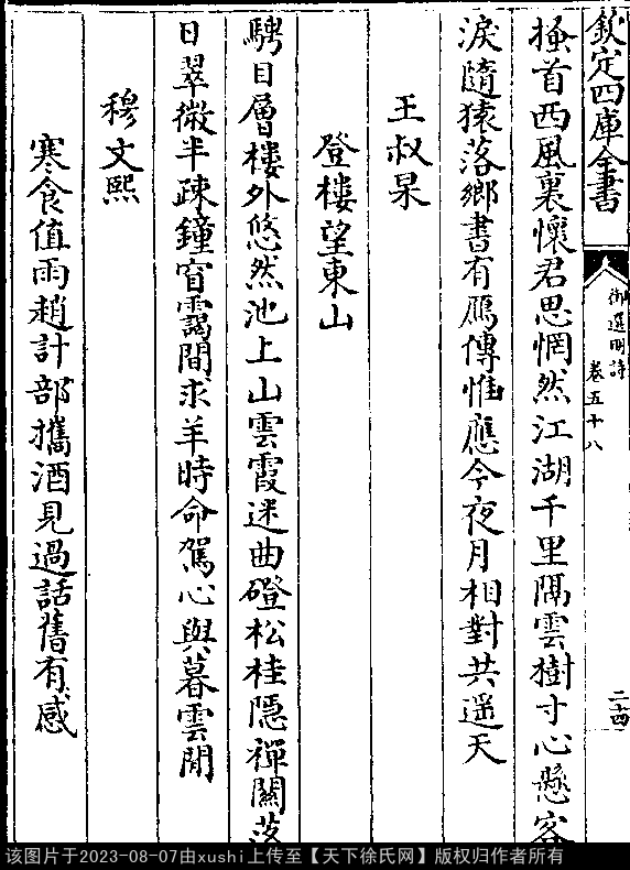 《御選宋金元明四朝詩-清-聖祖玄燁》御選宋金元明四朝詩 御選明詩卷五十八(第 24b - 25a 頁)